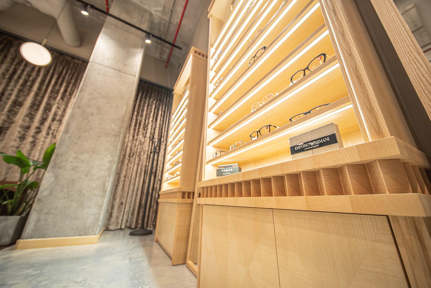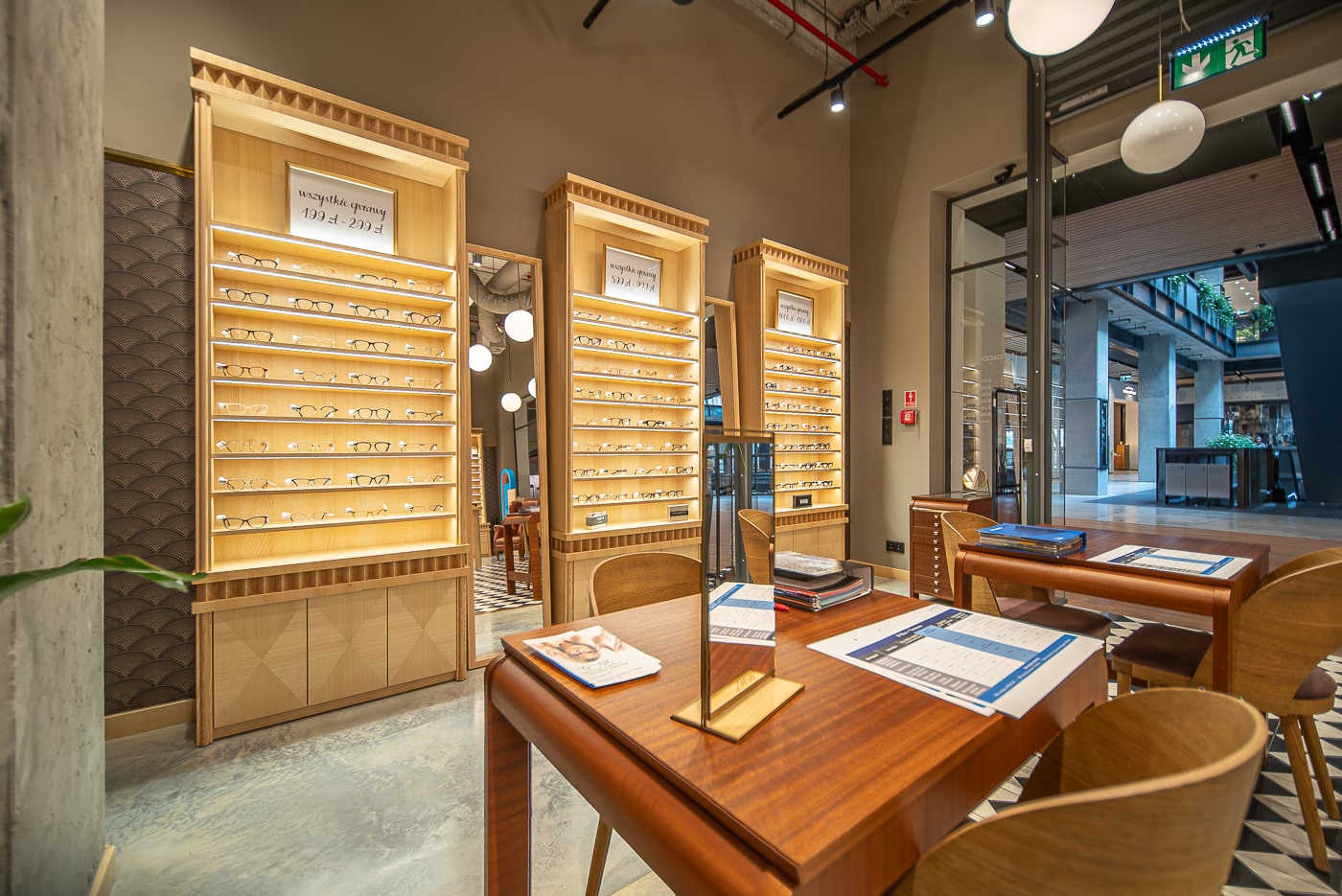 Ta realizacja to kwintesencja elegancji i funkcjonalności. Wykonane z najwyższej jakości drewna meble zostały zaprojektowane tak, by podkreślić piękno każdej oprawki. Subtelne oświetlenie LED, dopracowane detale i ponadczasowa forma tworzą przestrzeń, w której klient czuje się wyjątkowo. To nie tylko meble – to inwestycja w wizerunek salonu optycznego premium.